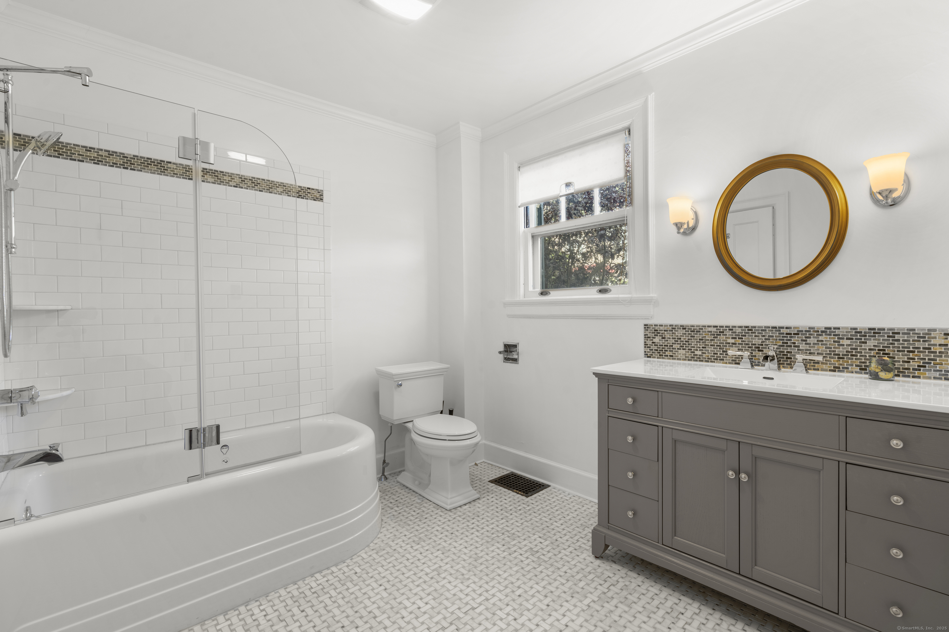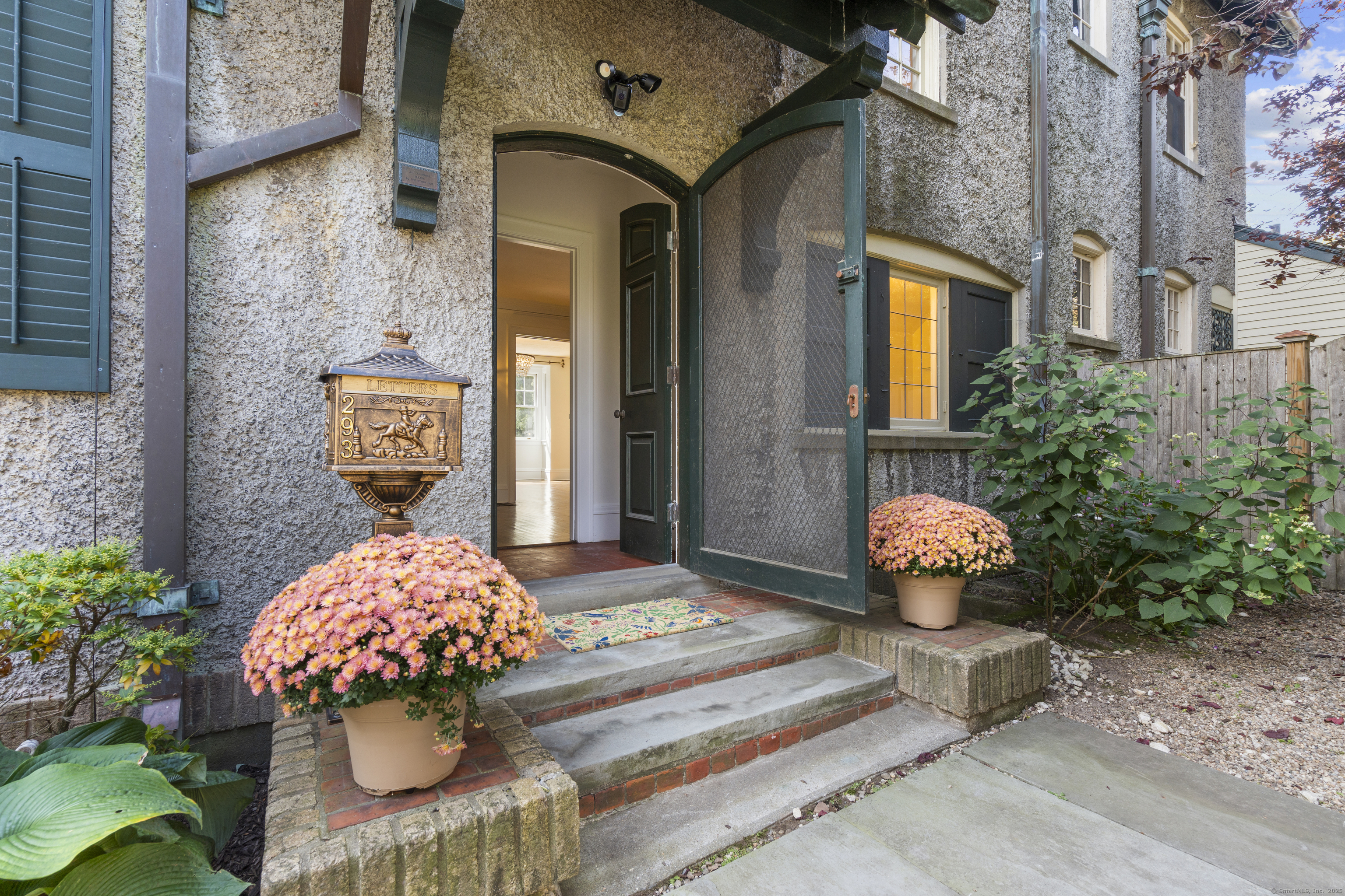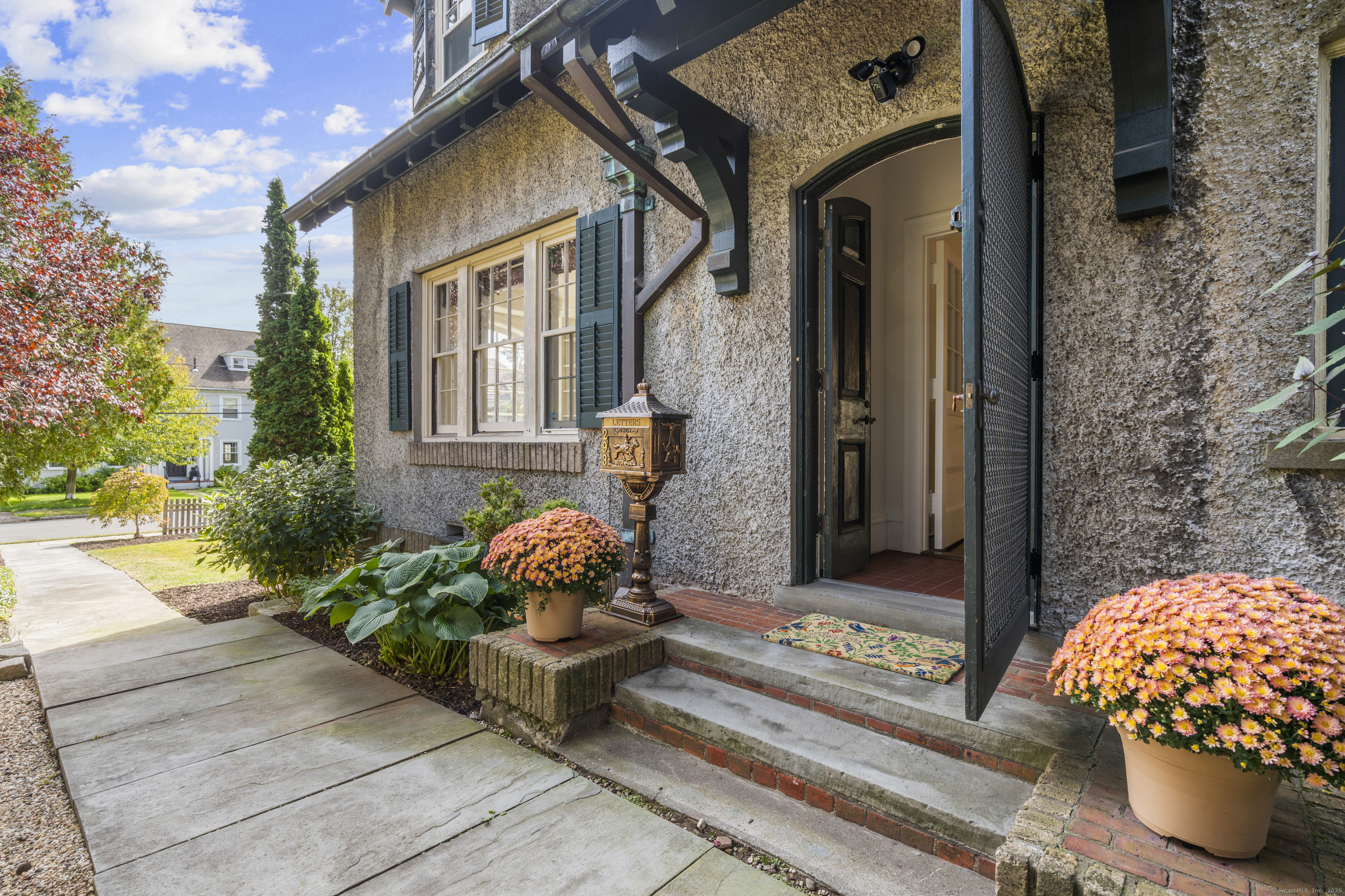 This Stunning Stucco and Slate English Colonial is just a Few steps away from Prestigious Elizabeth Park and it offers far more space than meets the eye. Meticulously maintained and beautifully updated, it features Brand New Professional Interior Painting, Expert Plaster Repairs, and Breathtaking Designer Light Fixtures throughout. A charming side-entry vestibule welcomes your guests into a gracious foyer with a turned staircase. The expansive living room boasts a gas fireplace and built-in bookshelves, and flows seamlessly into the cozy library offering built ins throughout perfect for reading or quiet work. The elegant formal dining room with its own gas fireplace connects to your fully renovated chef's kitchen, complete with Comercial Grade Viking Appliances, a Farmhouse Sink, Large Island with Seating, Spacious Butler's Pantry, and a Mudroom. A stylishly updated powder room completes the main level. Upstairs, the primary suite includes a spa-like bath, private balcony, and laundry room with 2 Washer/Dryer combo machines. 2 more bedrooms share a beautiful remodeled hallway bath, while a 4th bedroom offers privacy and comfort with its own bath. The finished 3rd floor features a vaulted great room, 3 more bedrooms, another newly updated full bath, and attic storage. Outside, enjoy your lush perennial gardens, a brick patio, and 2 covered porches ideal for entertaining. With gas heat, central air, and 2-car detached garage, this home is truly exceptional! This one wont last!