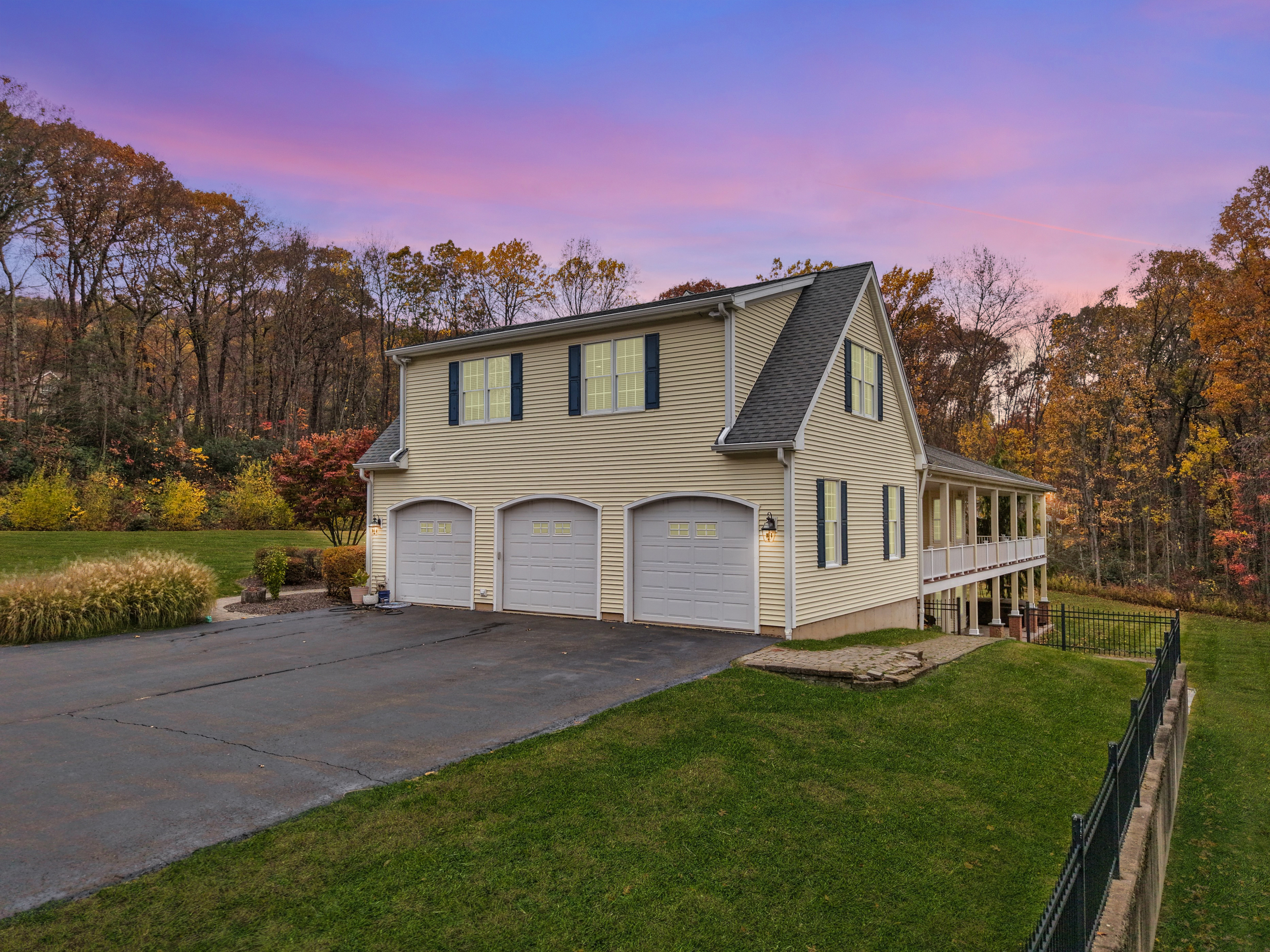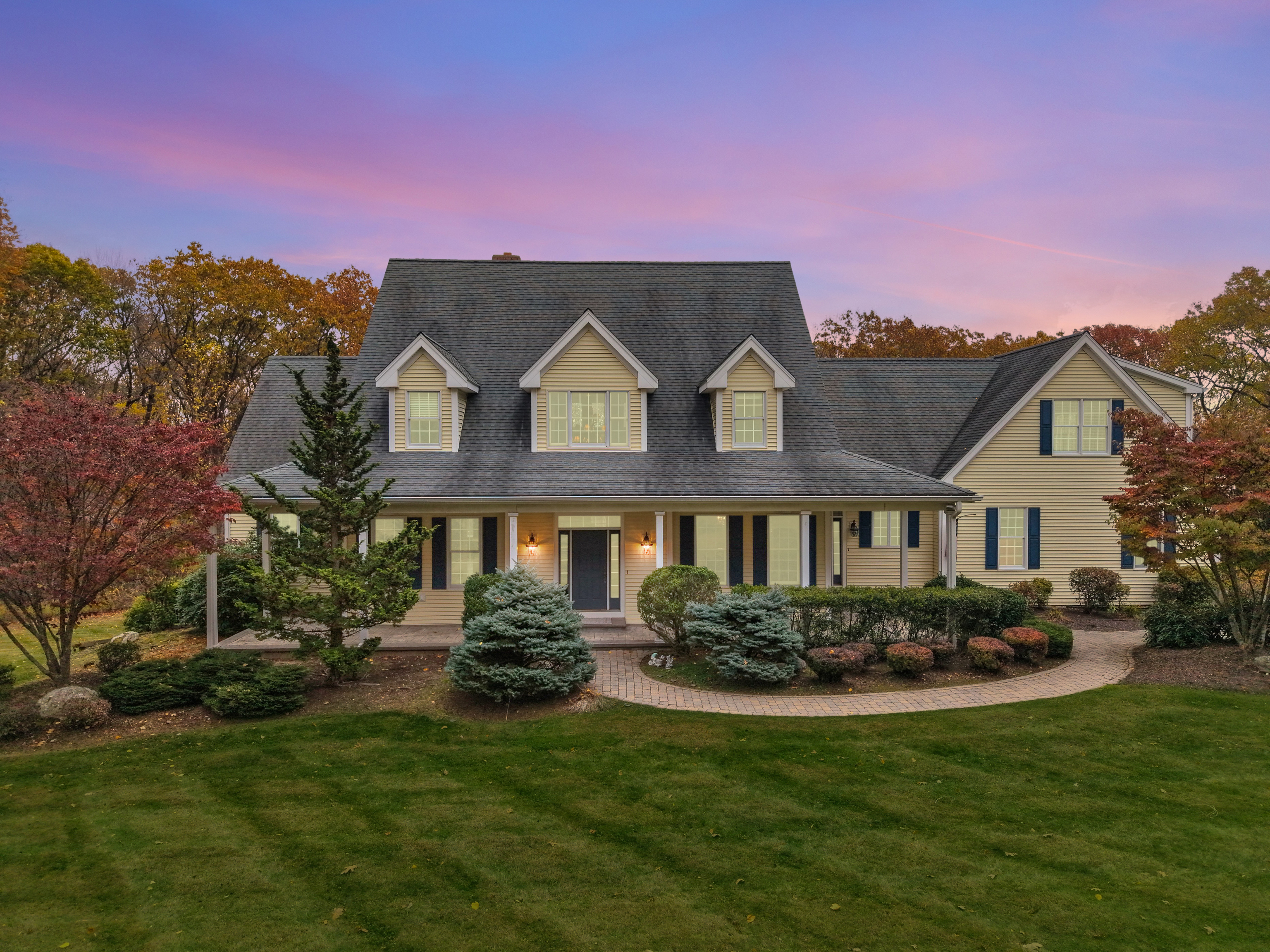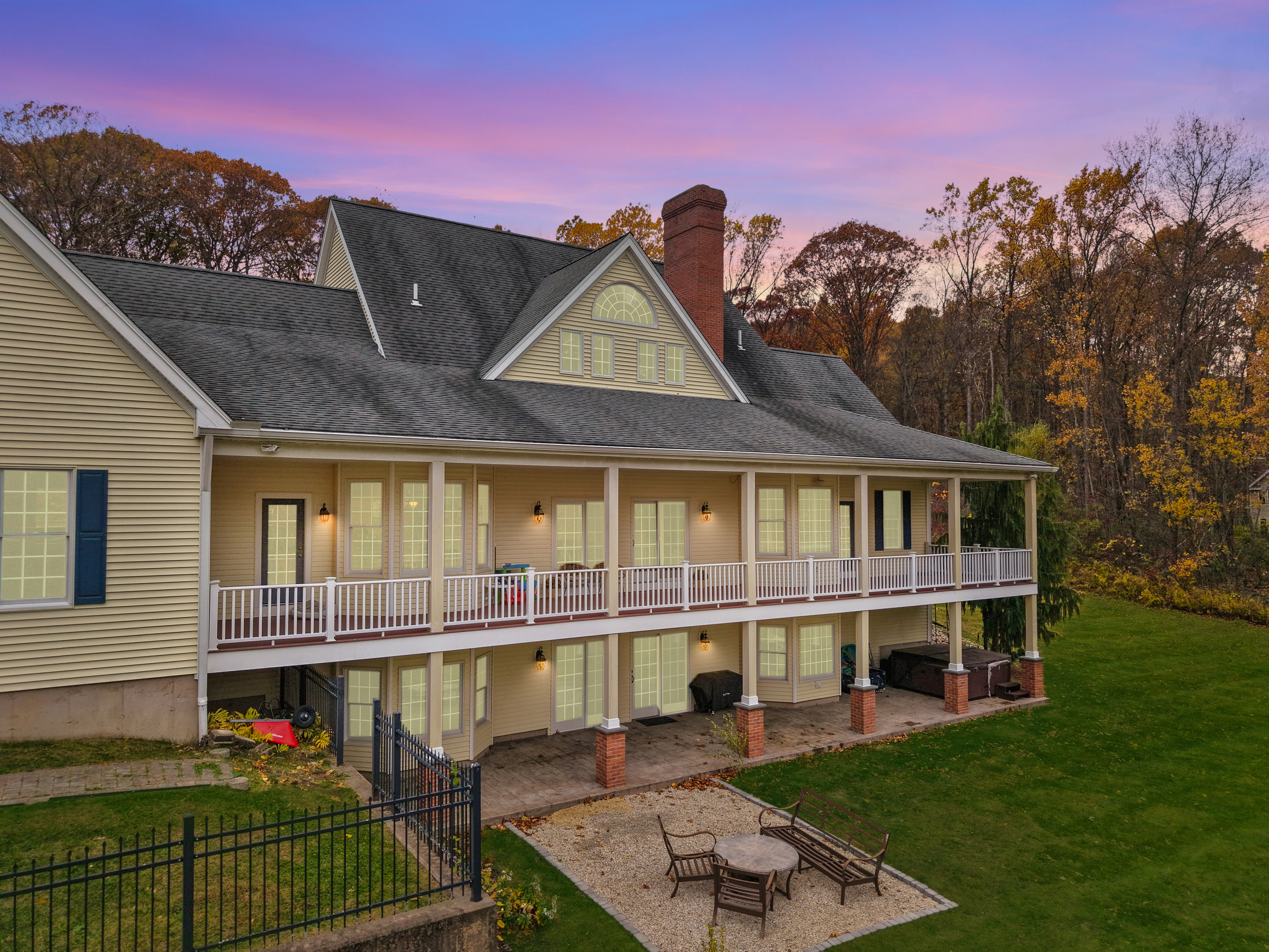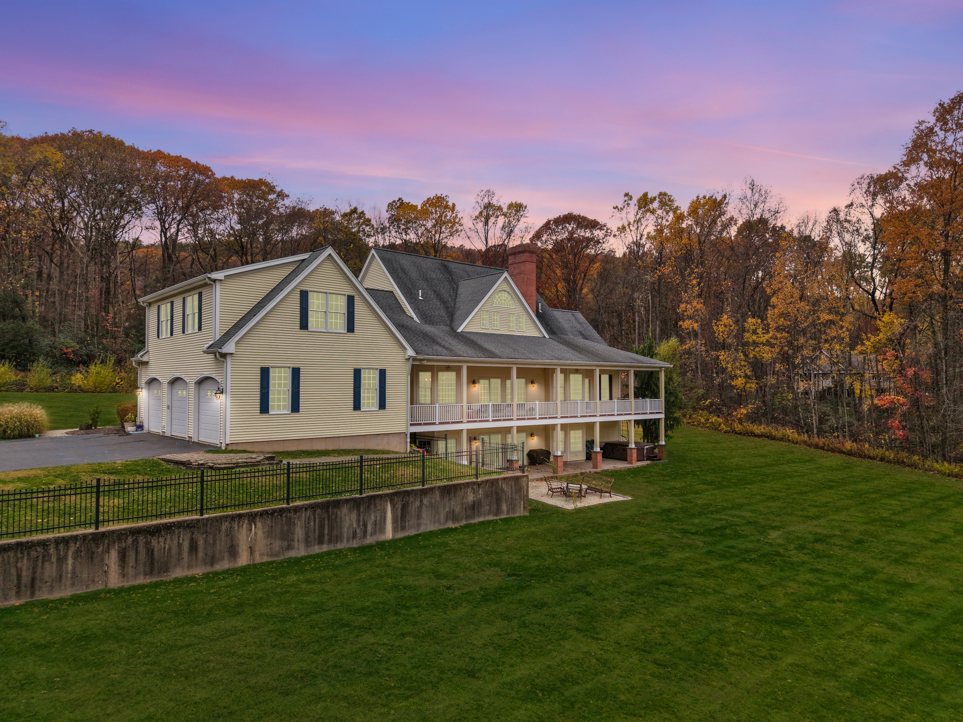 Luxurious Custom-Built Cape on 5+ Private Acres in Southington Nestled on one of the most desirable roads in Southington, this stunning 4,427 sq ft custom-built Cape offers over 5 acres of complete privacy surrounded by lush greenery and mature trees. Step inside through a grand 2-story foyer with a custom wood staircase, where natural light streams in each morning. Impeccable craftsmanship is evident throughout-every detail of the framing was built above design specifications. The great room impresses with soaring coffered cathedral ceilings, a see-through brick fireplace, and French doors leading to a 12' x 68' double-level porch with sweeping valley views. Designed for entertaining, the chef's eat-in kitchen boasts custom cherry cabinetry, granite countertops, stainless steel appliances, dual in-wall ovens, and a tile backsplash. Large picture windows frame the serene landscape, while French doors invite you to enjoy alfresco dining on the porch. Retreat to spacious bedrooms offering generous closets and peaceful views. The primary suite includes a sunlit ensuite with a soaking tub and granite dual vanity, creating a spa-like retreat. Additional Features: Wrap-around front porch and expansive double-level back porch (12' x 68') Lower-level patio approved for an 18' x 36' in-ground pool (per original site plan) 10' poured concrete foundation with full walkout basement, offering ~2,000 sq ft of potential finished space with 9' ceilings 400-amp sing