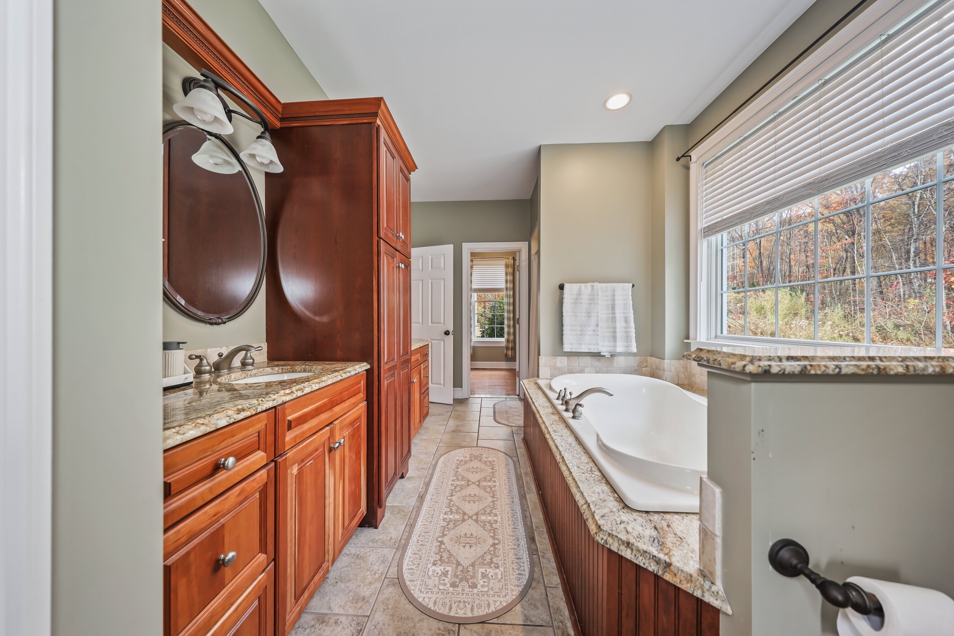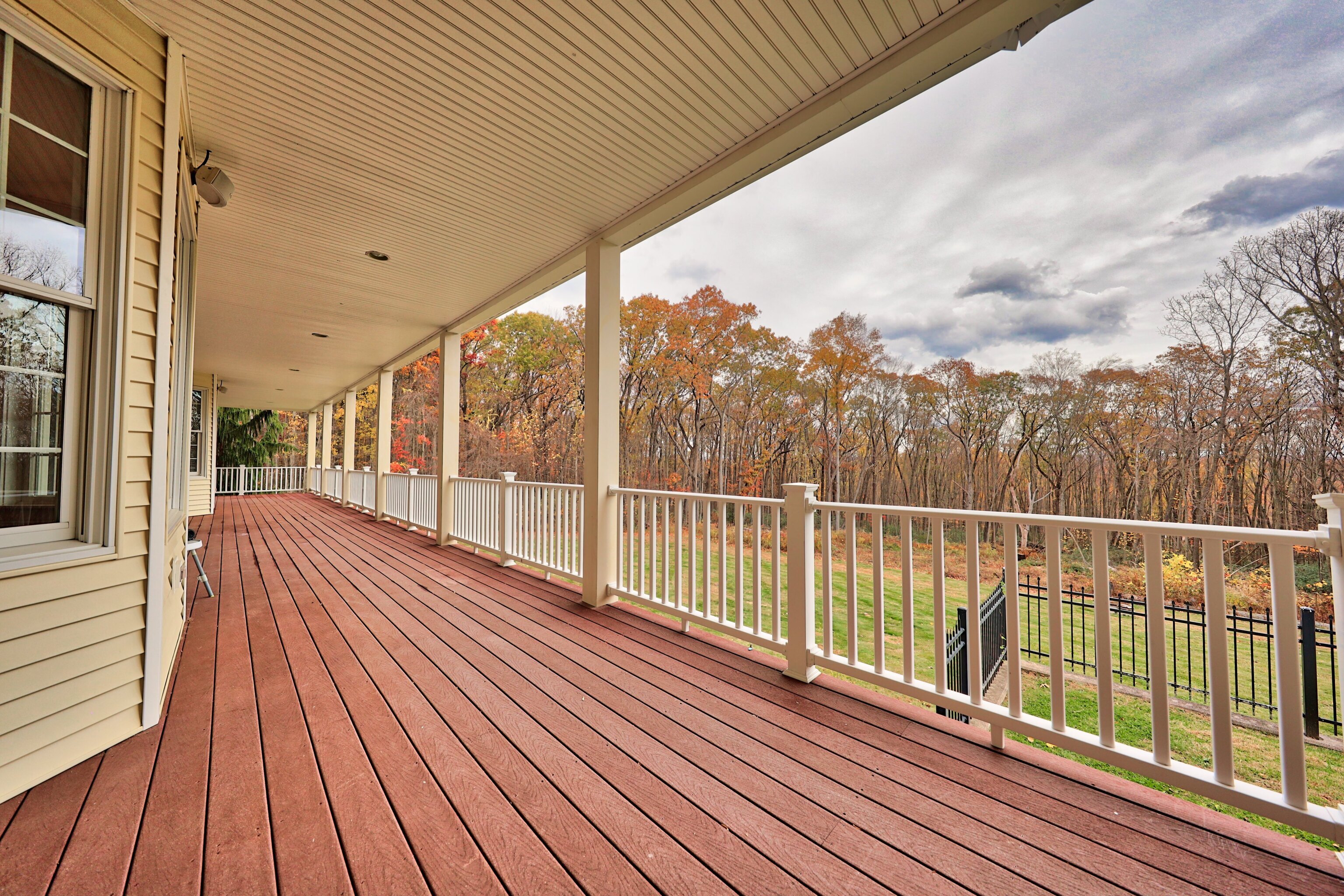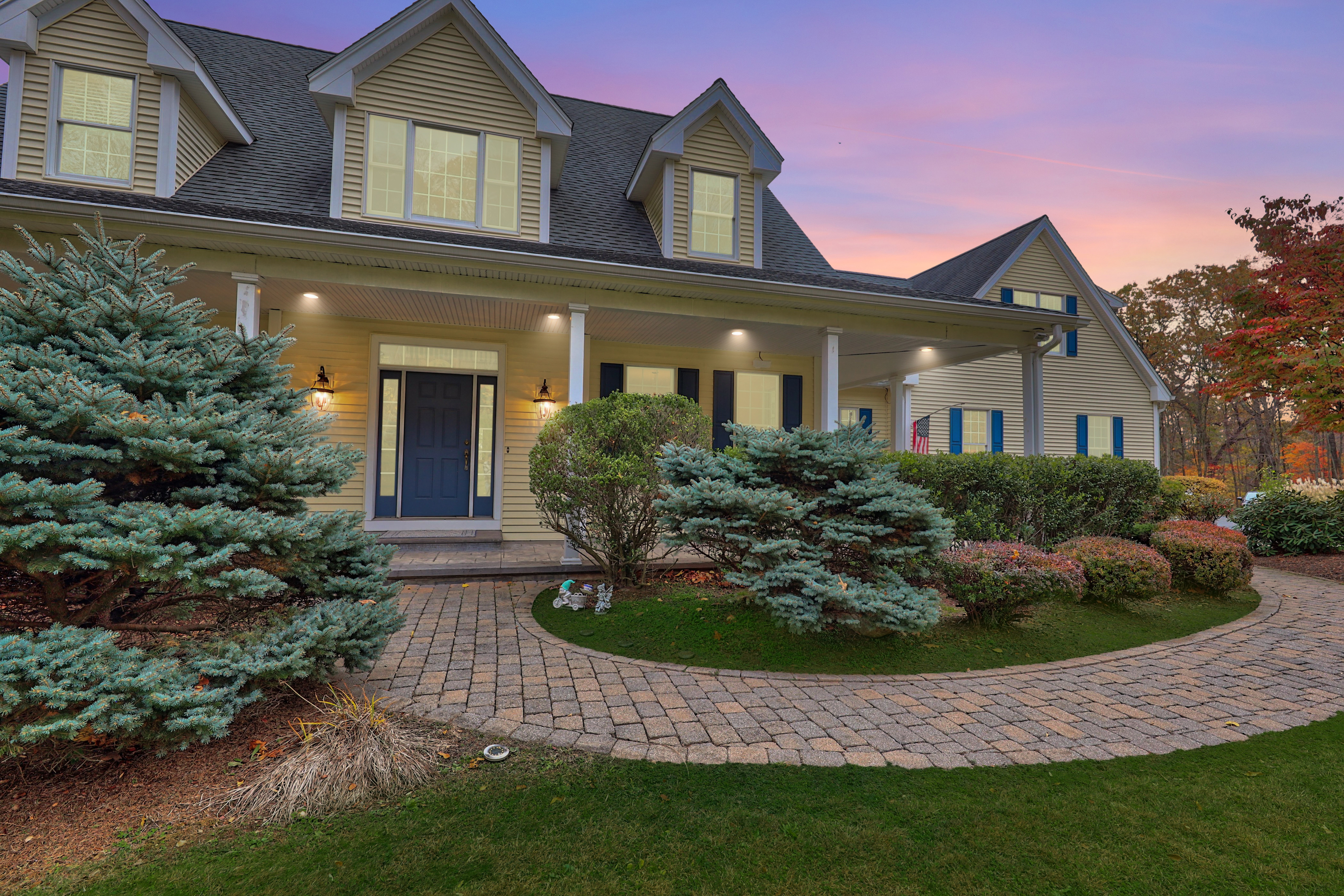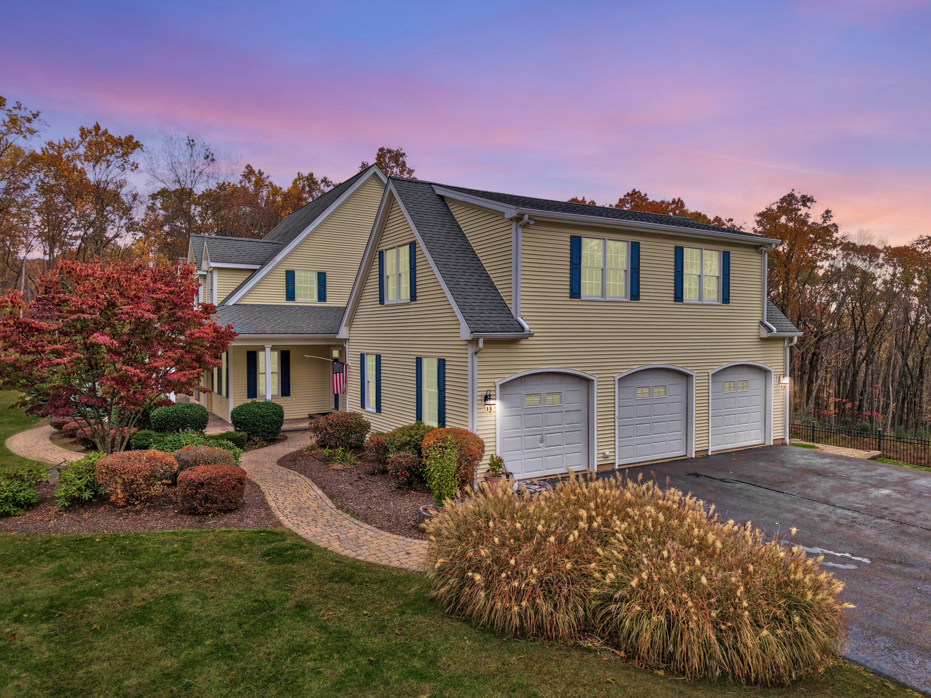 Luxurious Custom-Built Cape on 5+ Private Acres in Southington Nestled on one of the most desirable roads in Southington, this stunning 4,427 sq ft custom-built Cape offers over 5 acres of complete privacy surrounded by lush greenery and mature trees. Step inside through a grand 2-story foyer with a custom wood staircase, where natural light streams in each morning. Impeccable craftsmanship is evident throughout-every detail of the framing was built above design specifications. The great room impresses with soaring coffered cathedral ceilings, a see-through brick fireplace, and French doors leading to a 12' x 68' double-level porch with sweeping valley views. Designed for entertaining, the chef's eat-in kitchen boasts custom cherry cabinetry, granite countertops, stainless steel appliances, dual in-wall ovens, and a tile backsplash. Large picture windows frame the serene landscape, while French doors invite you to enjoy alfresco dining on the porch. Retreat to spacious bedrooms offering generous closets and peaceful views. The primary suite includes a sunlit ensuite with a soaking tub and granite dual vanity, creating a spa-like retreat. Additional Features: Wrap-around front porch and expansive double-level back porch (12' x 68') Lower-level patio approved for an 18' x 36' in-ground pool (per original site plan) 10' poured concrete foundation with full walkout basement, offering ~2,000 sq ft of potential finished space with 9' ceilings 400-amp sing